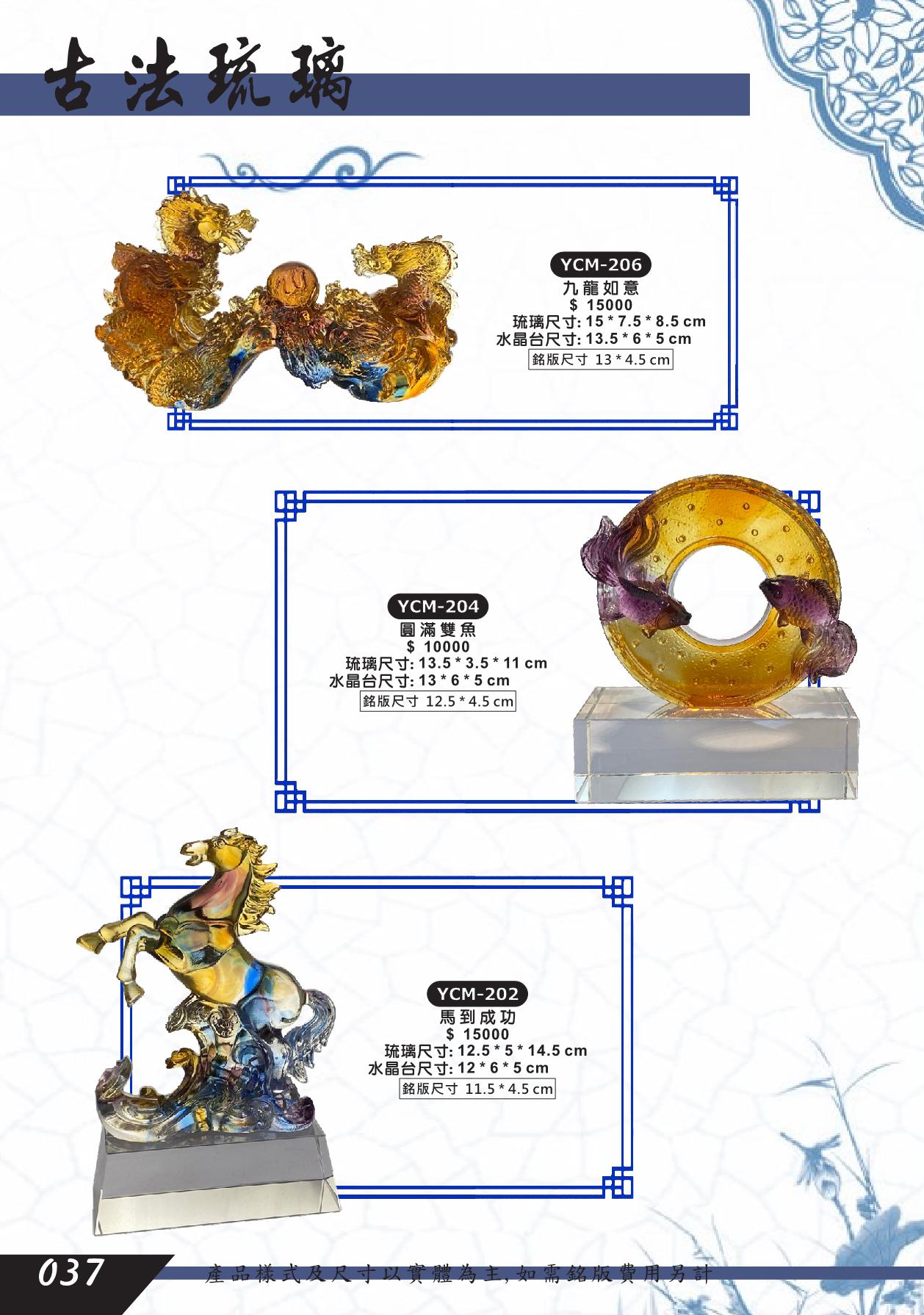 YCM-206,YCM-204,YCM-202,九龍如意,圓滿雙魚,馬到成功,脫臘琉璃藝品