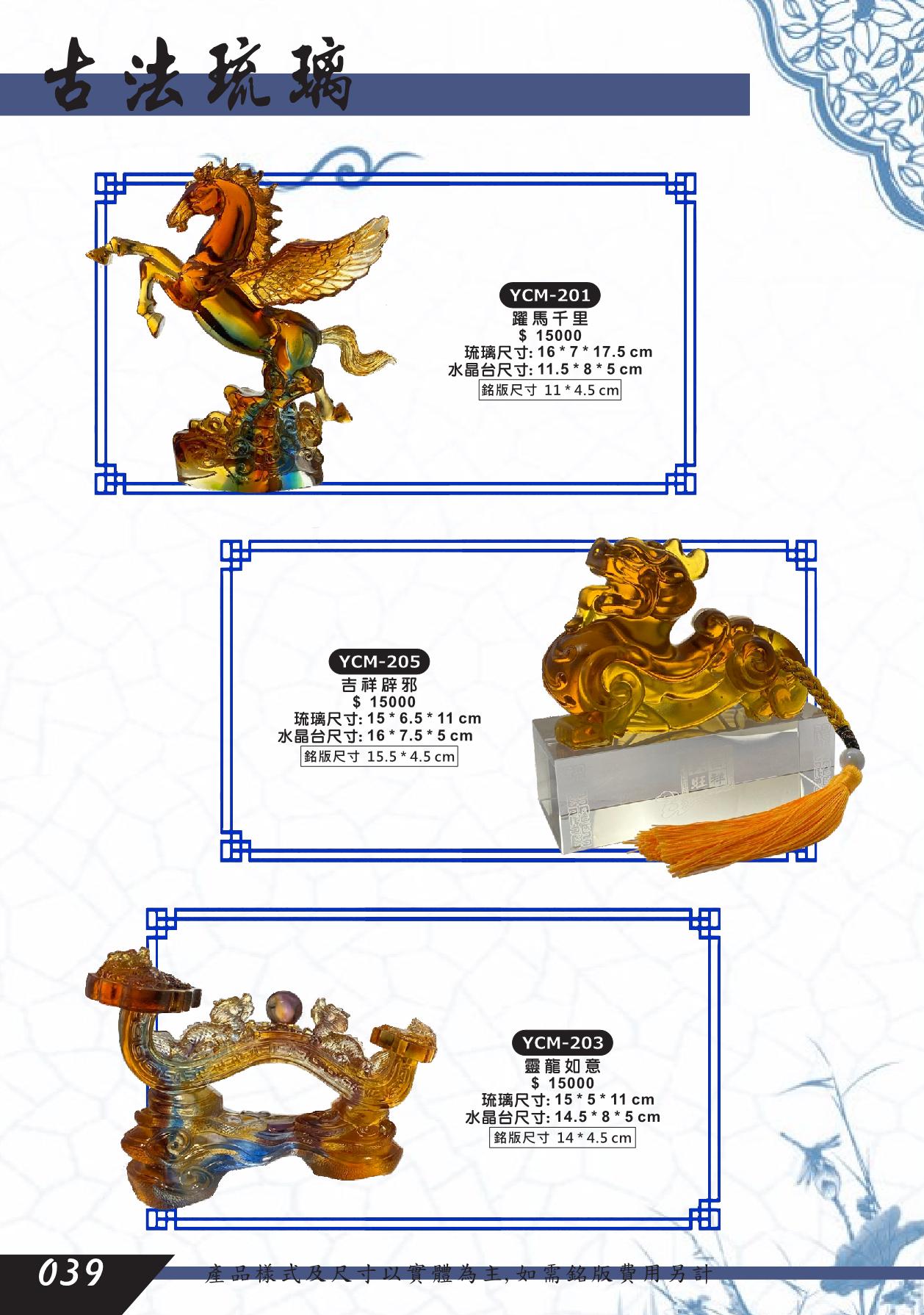 YCM-201,YCM-205,YCM-203,躍馬千里,吉祥辟邪,靈龍如意,貔貅,脫臘琉璃藝品