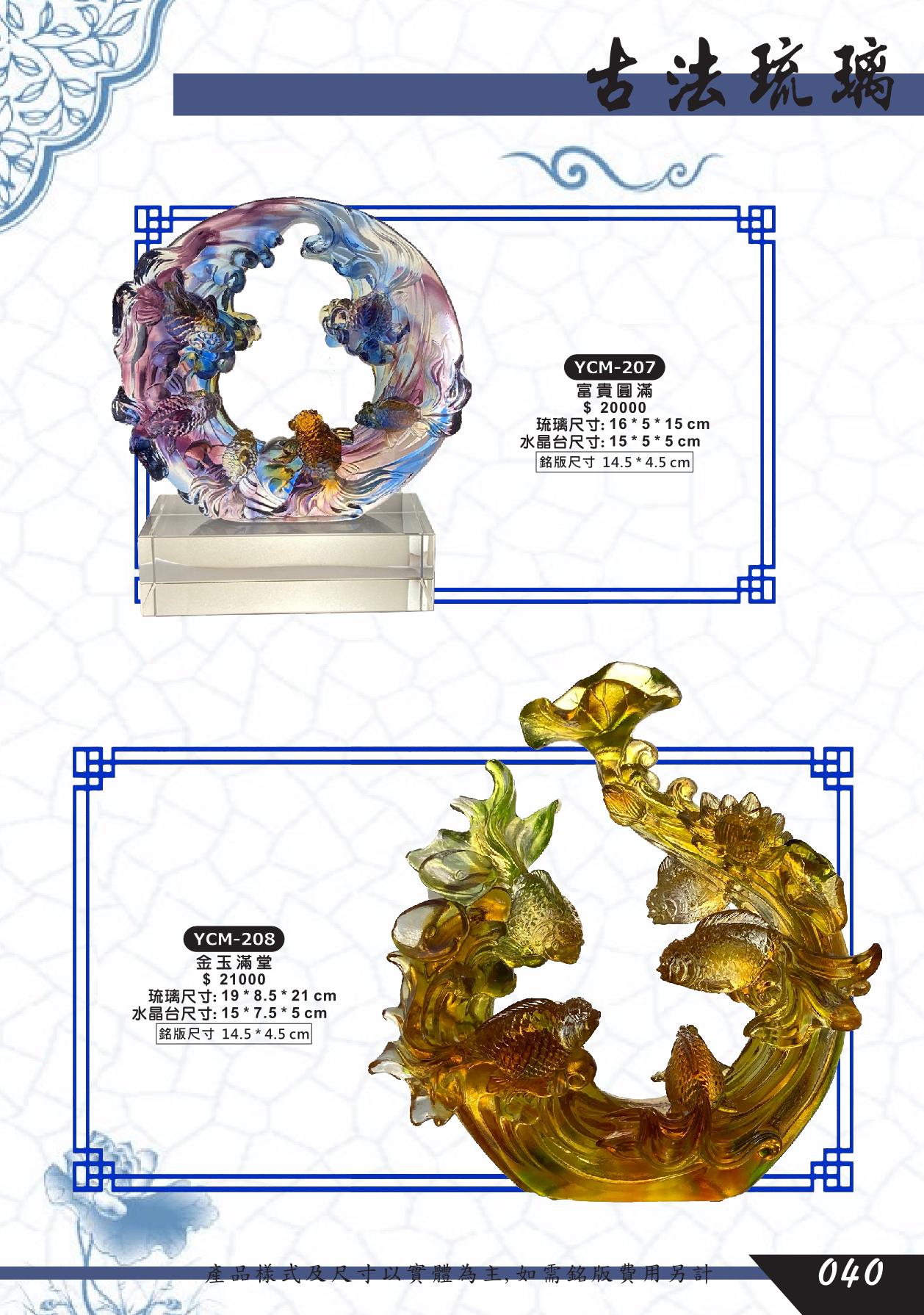 YCM-207,YCM-208,富貴圓滿,金玉滿堂,魚,脫臘琉璃藝品