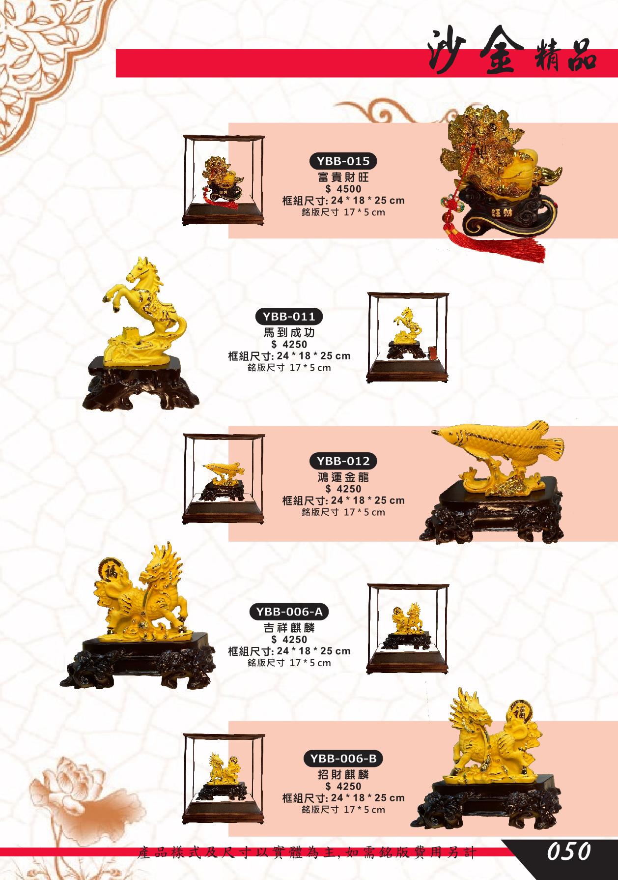 YBB015,YBB-011,YBB-012,YBB-006-A,YBB-006-B,富貴財旺.白菜,馬到成功,鴻運金龍,魚,吉祥麒麟,招財麒麟,沙金藝品
