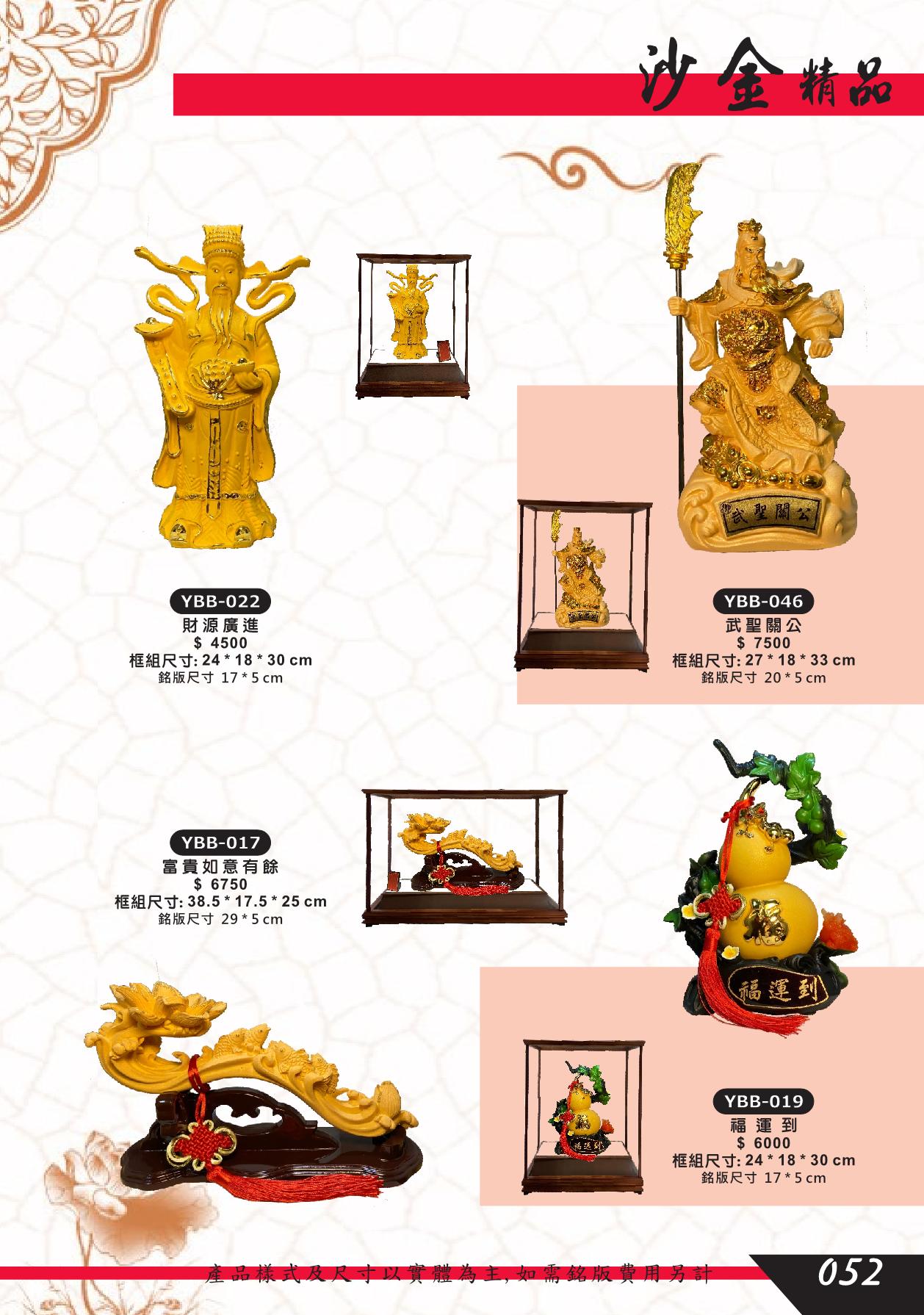 YBB-022,YBB-046,YBB-017,YBB-019,財源廣進,武聖關公,富貴如意有餘,福運到,葫蘆,沙金藝品