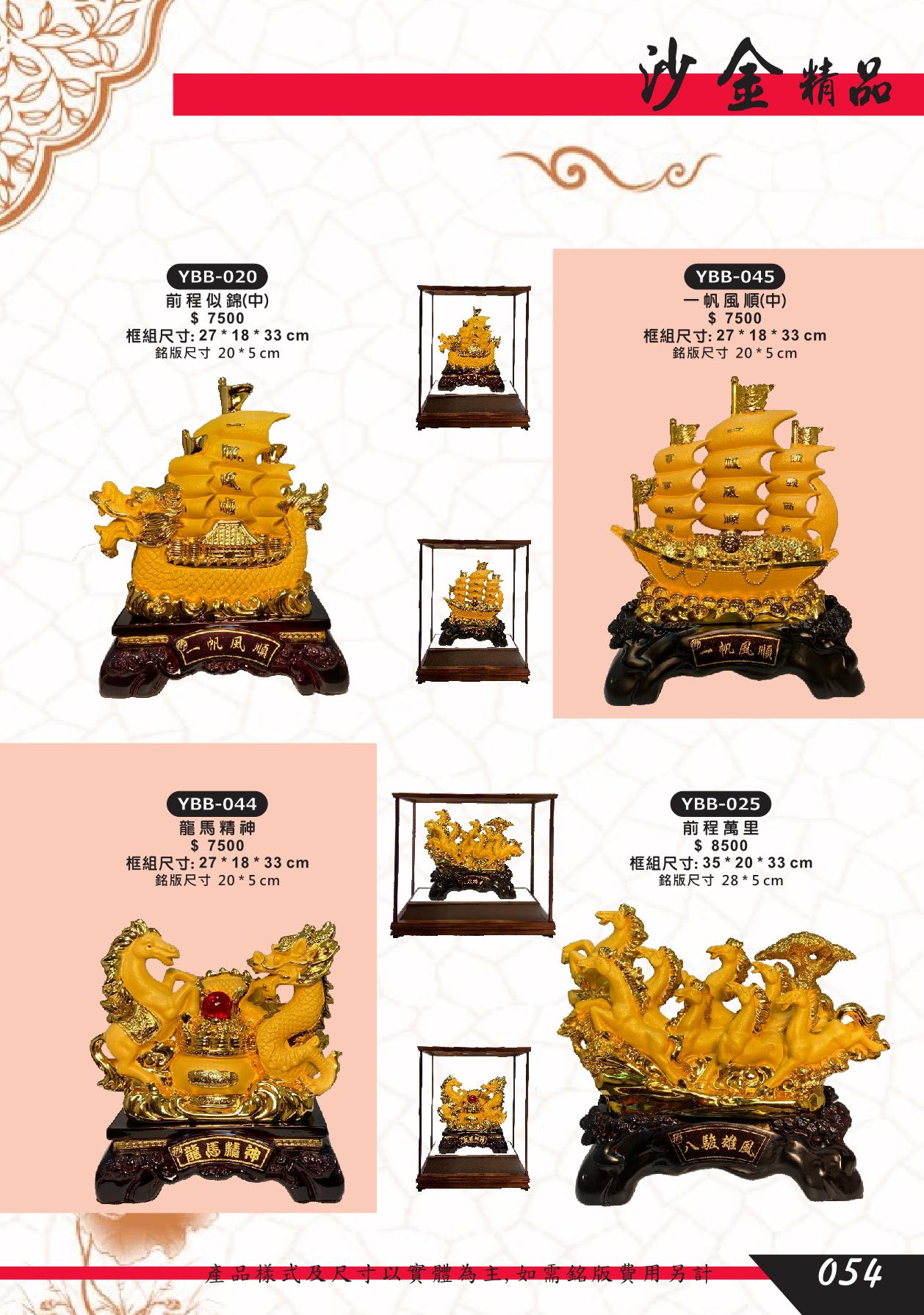 YBB-020,YBB-045,YBB-044,YBB-025,前程似錦,船,一帆風順,龍馬精神,前程萬里,馬,沙金藝品