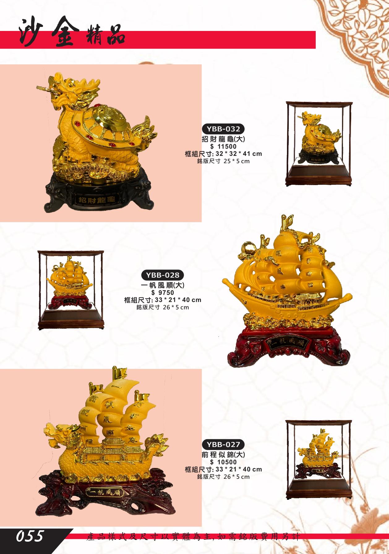 YBB-032,YBB-028,YBB-027,招財龍龜,一帆風順,船,前程似錦,沙金藝品