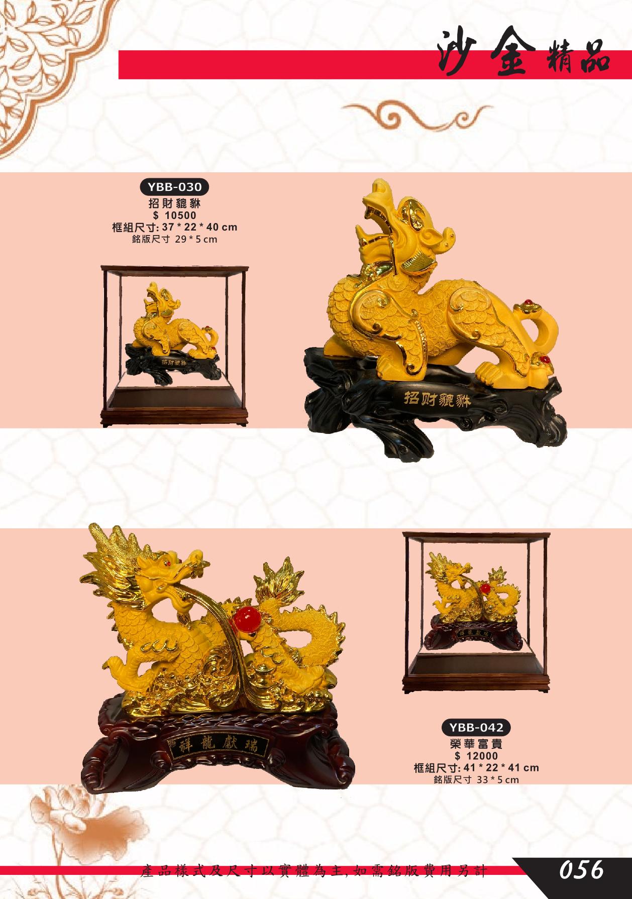 YBB-030,YBB-042,招財貔貅,榮華富貴,龍,沙金藝品