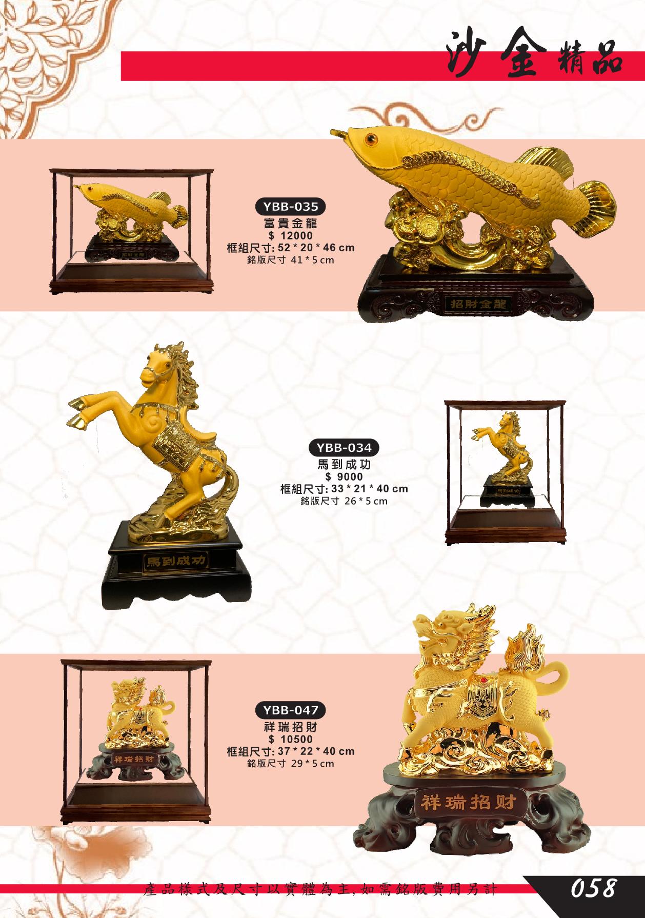 YBB-035,YBB-034,YBB-047,富貴金龍,魚,馬到成功,祥瑞招財,麒麟,沙金藝品