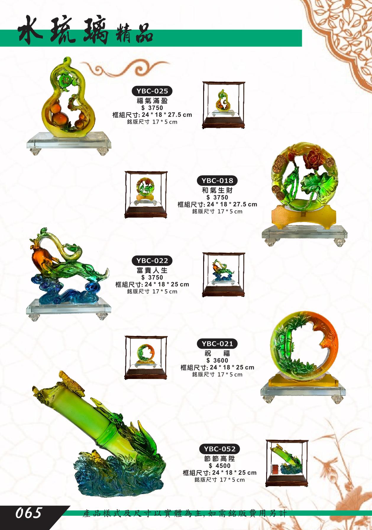 YBC-025,YBC-018,YBC-022,YBC-021,YBC-052,福氣滿盈,葫蘆,和氣生財,富貴人生,人參,祝福,竹,節節高陞,水琉璃藝品