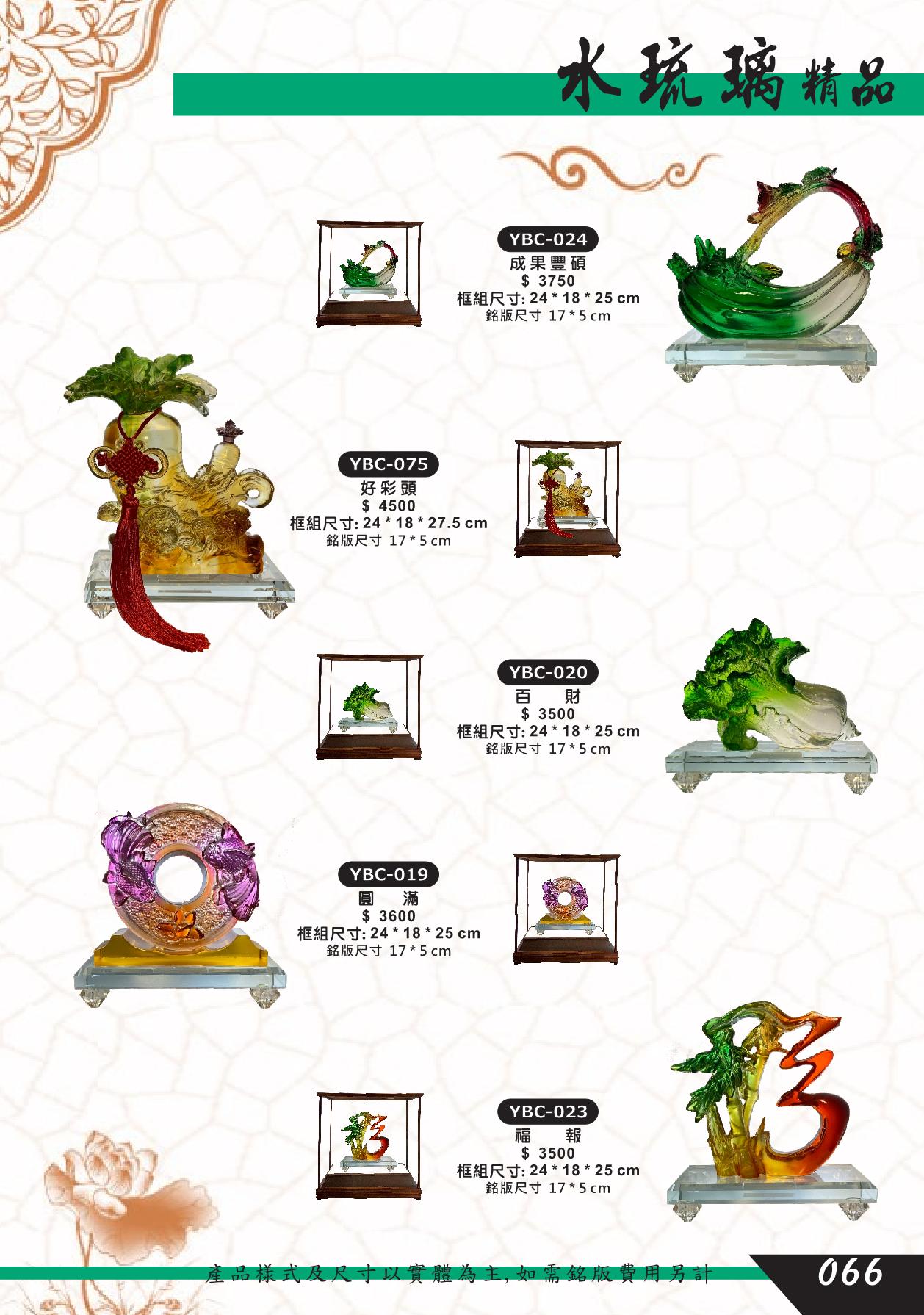 YBC-024,YBC-075,YBC-020,YBC-019,YBC-023,成果豐碩,好彩頭,百財,白菜,圓滿,魚,福報,水琉璃藝品