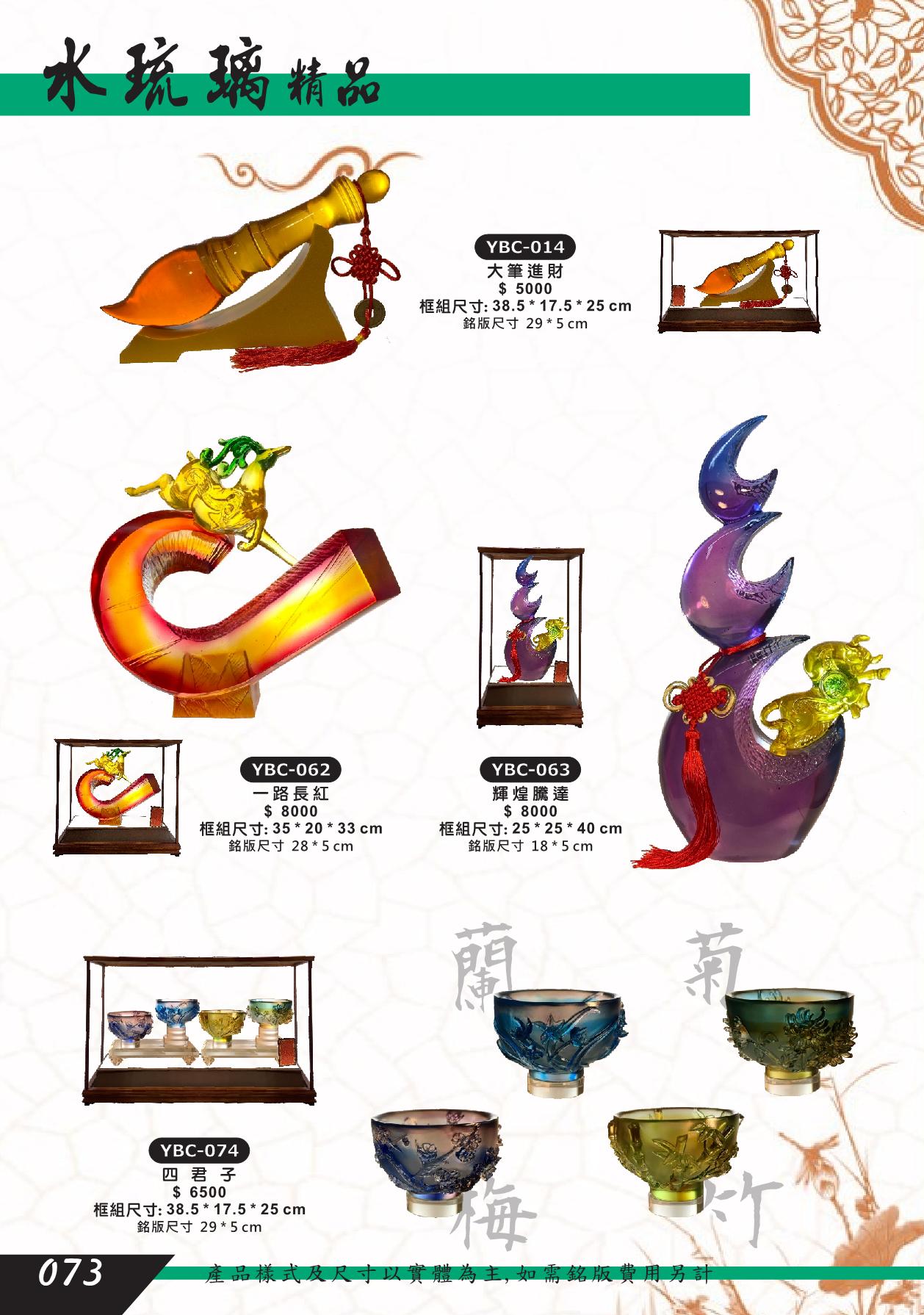 YBC-014,YBC-062,YBC-063,YBC-074,大筆進財,一路長紅,輝煌騰達,四君子,水琉璃藝品