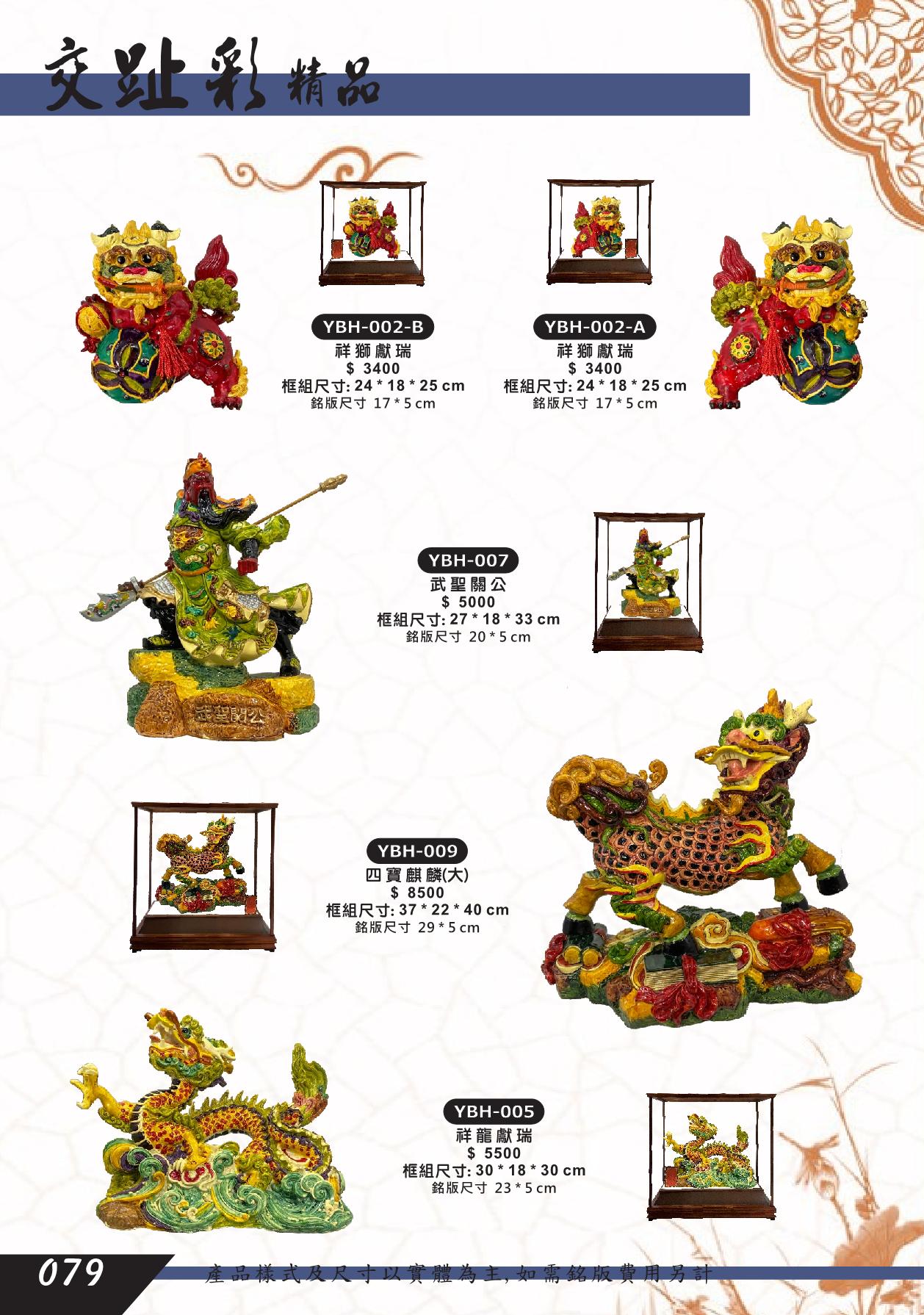 YBH-002,YBH-007,YBH-009,YBH-005,祥獅獻瑞,武聖關公,四寶麒麟,祥龍獻瑞,交趾彩藝品