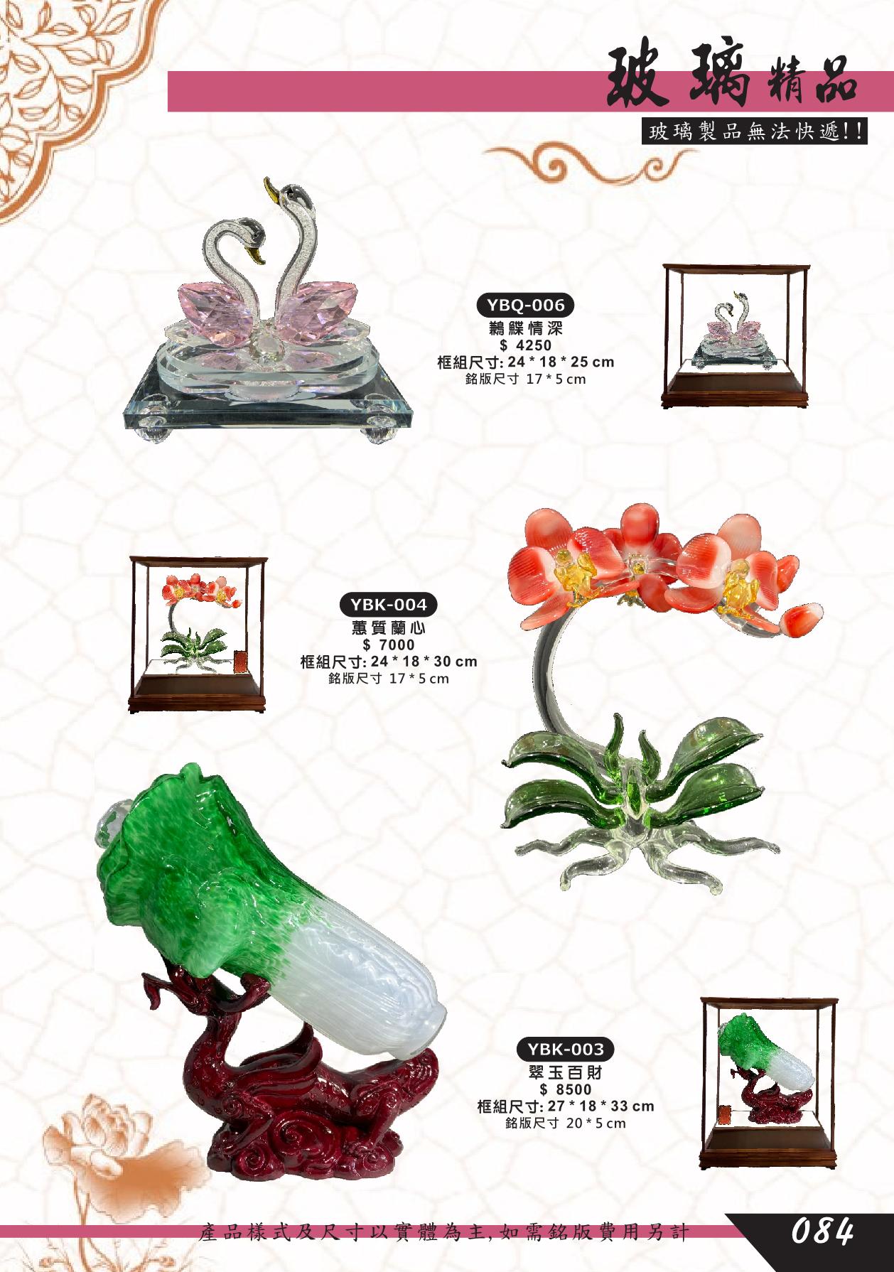YBQ-006,YB-004,YBK-003,鶼鰈情深,蕙質蘭心,翠玉百財,白菜,玻璃水晶藝品