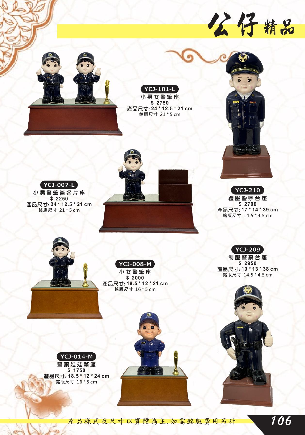 YCJ-101-L,YCJ-007-L,YCJ-008-M,YCJ-210,YCJ-209,YCJ-014-M,小男女警筆座,小男警筆筒名片座,小女警筆座,禮服警察台座,警察娃娃筆座,制服警察台座,公仔