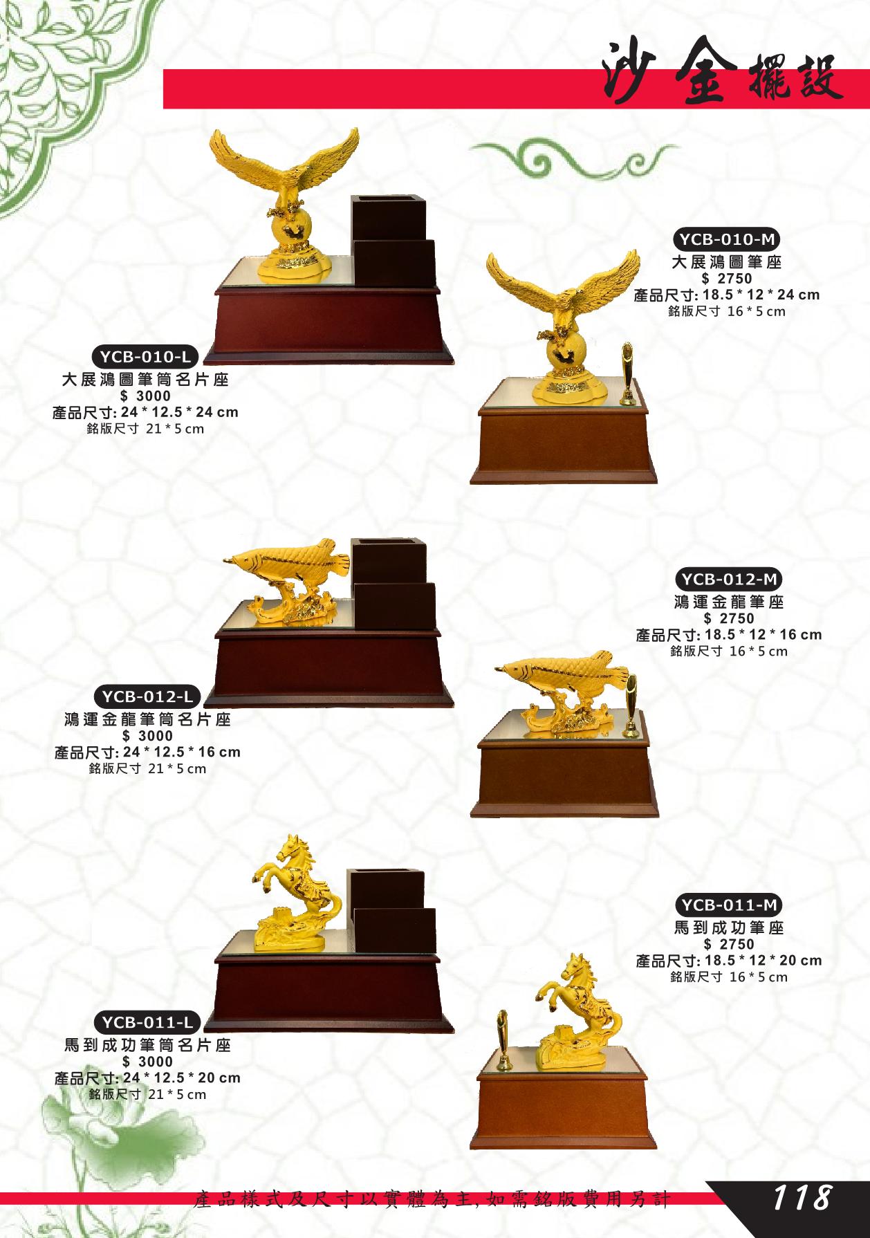 YCB-010,YCB-012,YCB-011,大展鴻圖,鷹,名片座,筆座,鴻運金龍,魚,馬到成功,沙金藝品