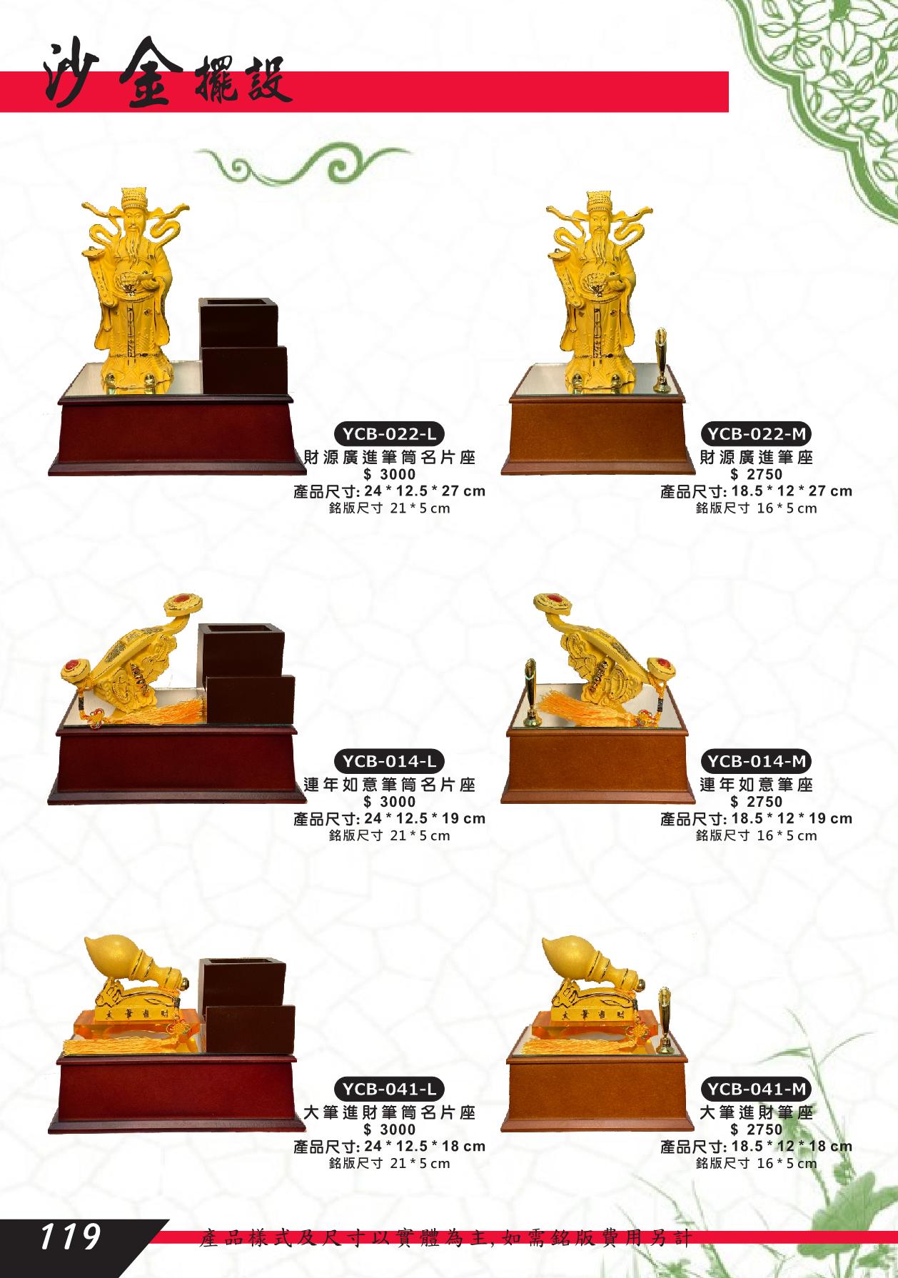 YCB-022,YCB-014,YCB-041,財源廣進,名片座,筆座,連年如意,大筆進財,沙金藝品