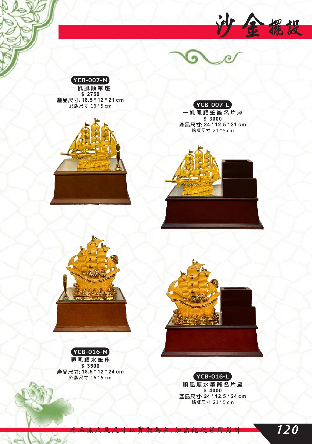 YCB-007,YCB-016,一帆風順,順風順水,船,筆座,名片座,沙金藝品