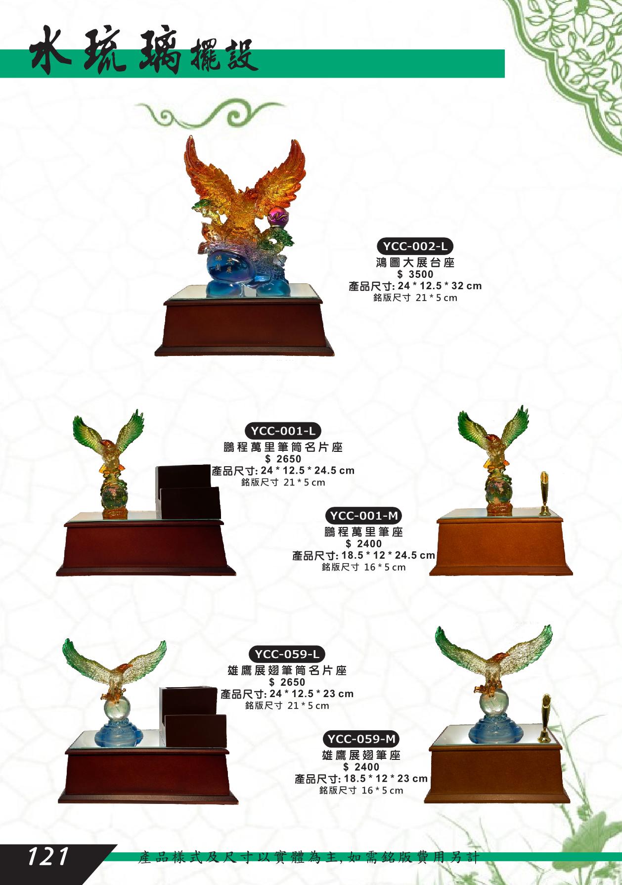 YCC-002-L,YCC-001,YCC-059,鴻圖大展,鷹,鵬程萬里,名片座,筆座,雄鷹展翅,水琉璃藝品