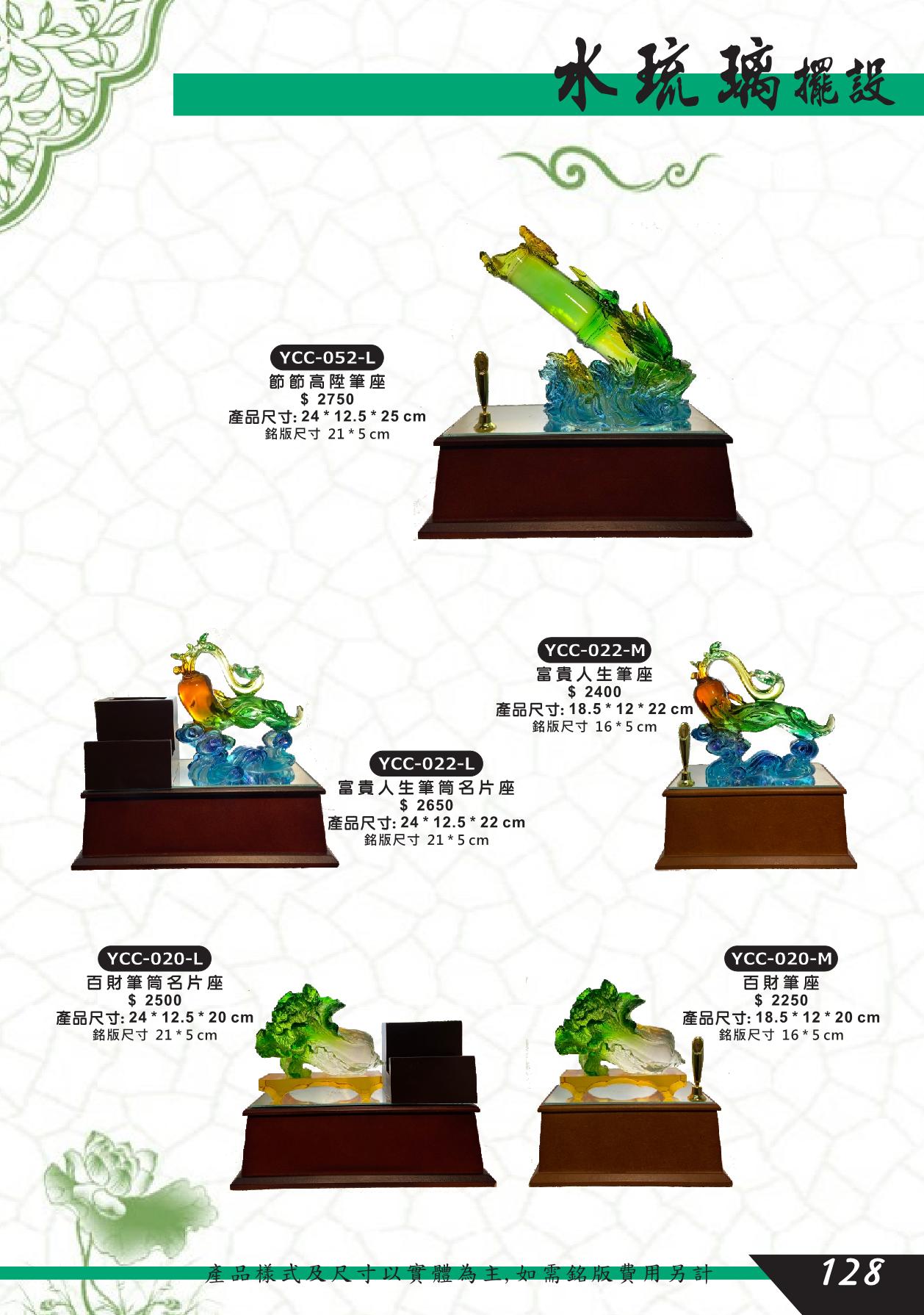 YCC-052-L,YCC-020,YCC-022,節節高陞,筆座,名片座,富貴人生,人參,百財,白菜,水琉璃藝品