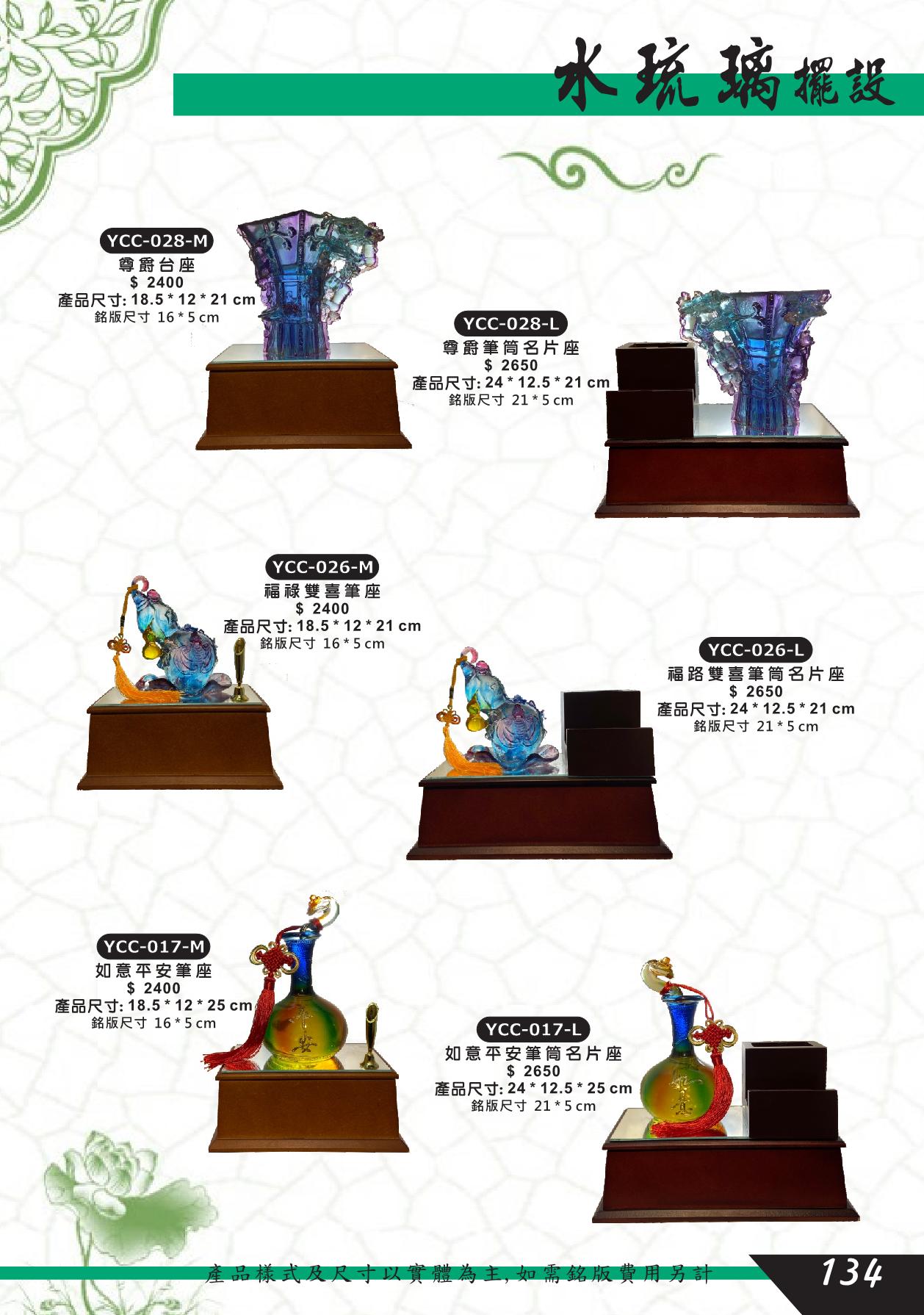 YCC-028,YCC-026,YCC-017,尊爵,筆座,名片座,福祿雙喜,葫蘆,如意平安,水琉璃藝品