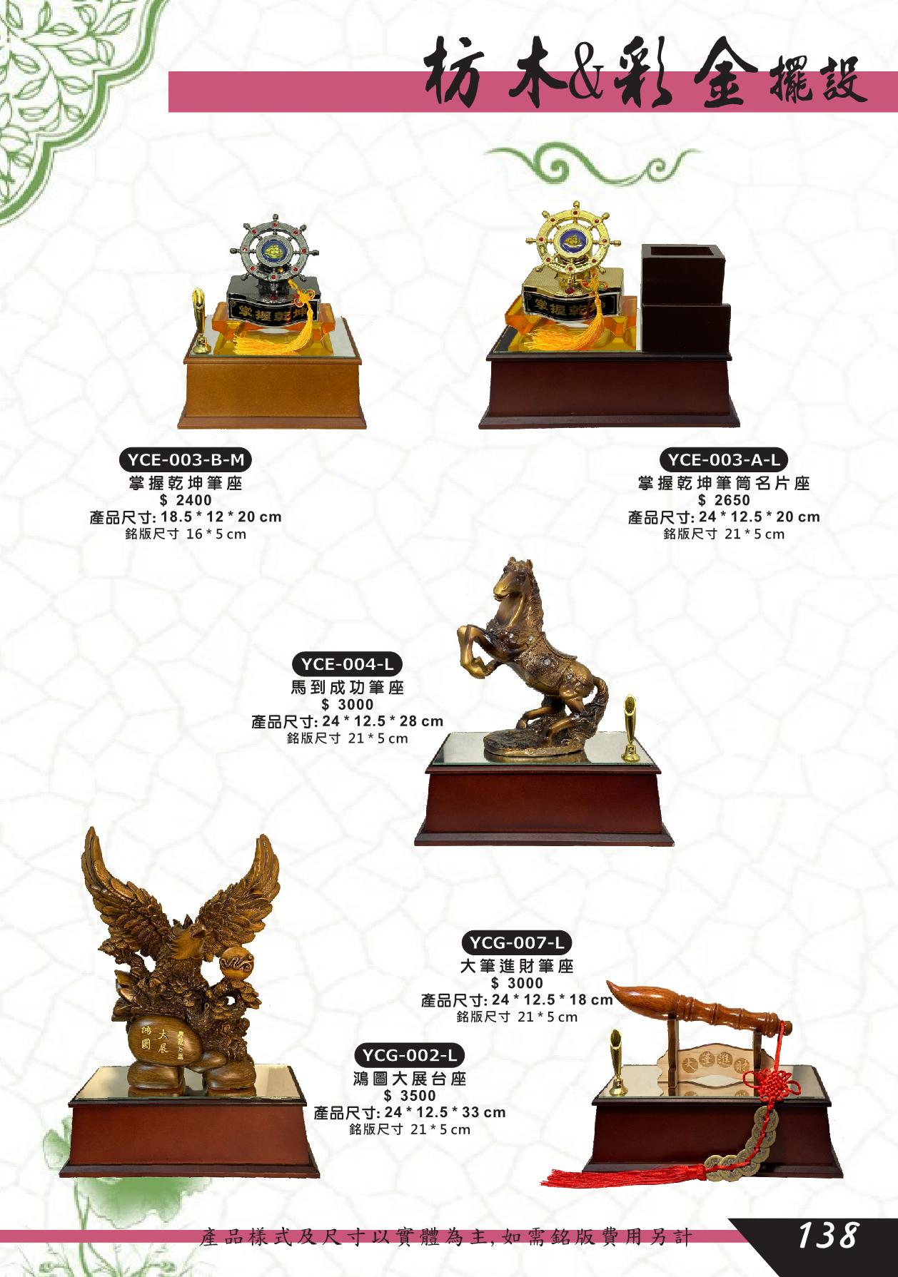 YCE-003-B-M,YCE-003-A-L,YCE-004-L,YCG-007-L,YCG-002-L,掌握乾坤,筆座,名片座,馬到成功,大筆進財,鴻圖大展,鷹,枋木藝品,彩金藝品