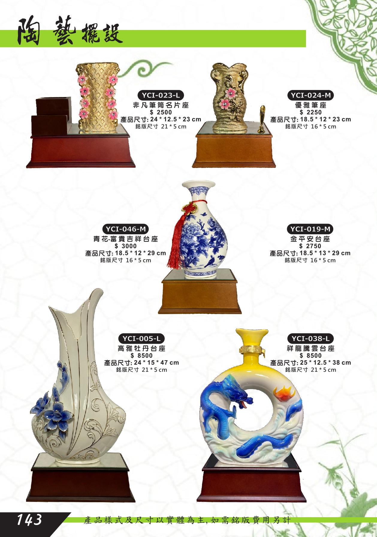 YCI-023-L,YCI-024-M,YCI-046-M,YCI-019-M,YCI-005-L,YCI-038-L,非筆,筆座,名片座,優雅,青花富貴吉祥,金平安,高雅牡丹,祥龍騰雲,陶藝藝品