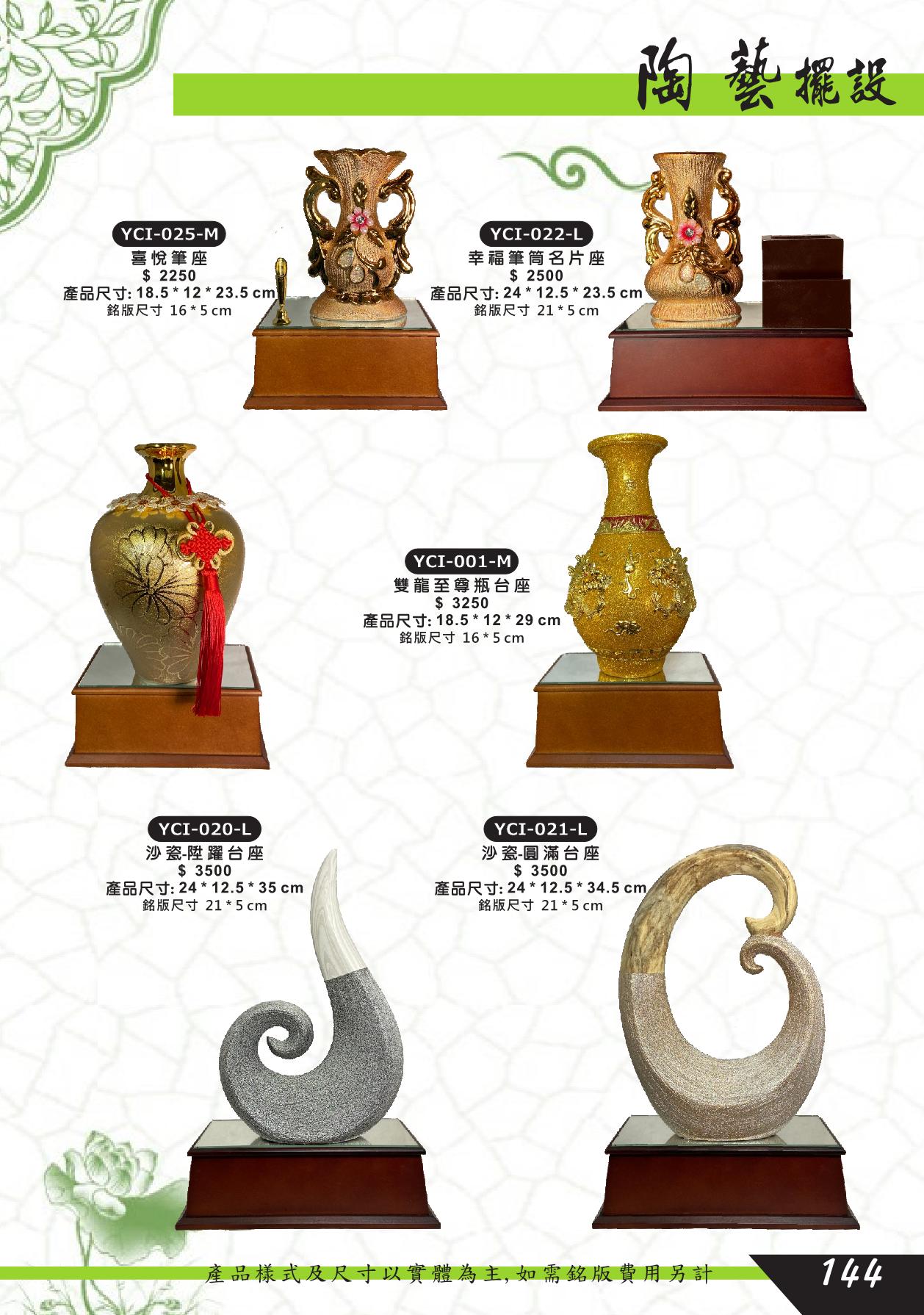 YCI-025-M,YCI-022-L,YCI-001-M,YCI-020-L,YCI-021-L,喜悅,筆座,幸福,名片座,雙龍至尊,沙瓷陞躍,沙瓷圓滿,陶藝藝品